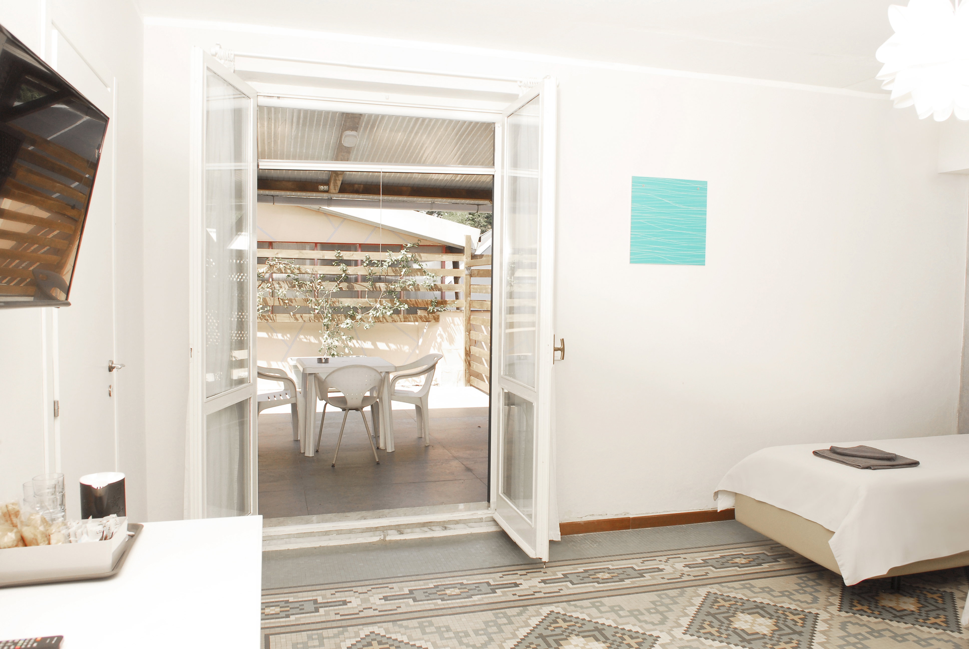 - Rooms with natural light and simple furniture